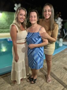 Grazi Ubiali, jornalista e apresentadora de tv e sua irmã Caroline Backes Borges Vieira com a mamãe Claudete Backes.