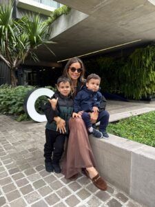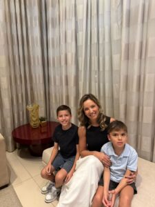 Tamara Aragão, da loja Etté, com seus filhos Eduardo e Miguel.