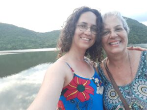 Letícia Bombo, jornalista e assessora felicitando sua mãe Nina Rosa.