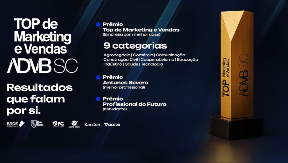 A Associação dos Dirigentes de Vendas e Marketing de Santa Catarina (ADVB/SC) está com inscrições abertas para o Prêmio Top de Marketing e Vendas 2025, a mais tradicional distinção do setor no Estado. Em sua 39ª edição, a premiação reconhece empresas que desenvolveram estratégias inovadoras em marketing e vendas, com resultados expressivos e impacto positivo para seus negócios e para o mercado catarinense. As inscrições devem ser feitas até 22 de setembro, pelo site www.advbsc.com.br/top-de-marketing-e-vendas.