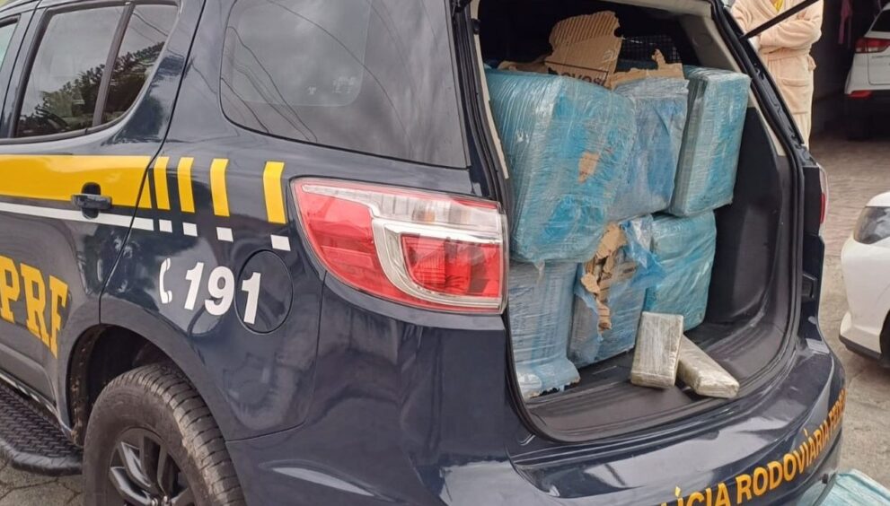 Dentro do veículo, diversas caixas com fardos de maconha ocupavam todo o porta-malas, banco traseiro e banco do passageiro, totalizando 319,7 quilos do entorpecente.