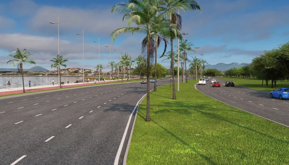 O projeto contempla 3,7 km de extensão ligando o limite com Florianópolis até a BR-101, vias de acesso e conexão de 2,8 km, implantação de ciclovias, passeios, iluminação LED, paisagismo e áreas de lazer, esporte e cultura, incluindo pista de skate, concha acústica e salas multiuso, além de ampla requalificação da faixa costeira. A obra também contempla soluções modernas de drenagem, pavimentação, integrando o projeto ao conceito de cidade inteligente e sustentável.